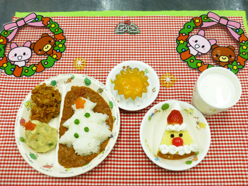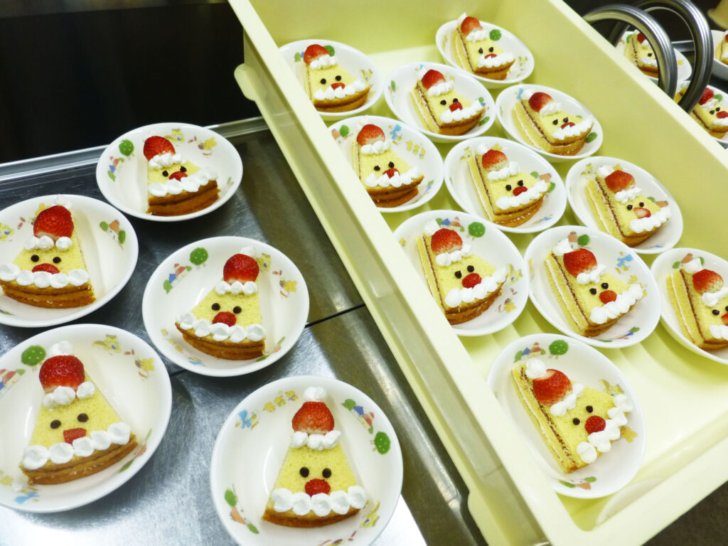 デザートにはカップゼリーを添え、おやつにはスペシャルケーキでクリスマスの特別感を演出しました。